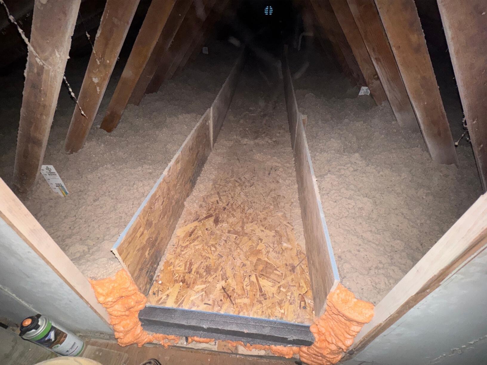 Crew was timely and professional. They removed old attic insulation added walkway, sealed ceiling penetrations, reinstalled new insulation.
